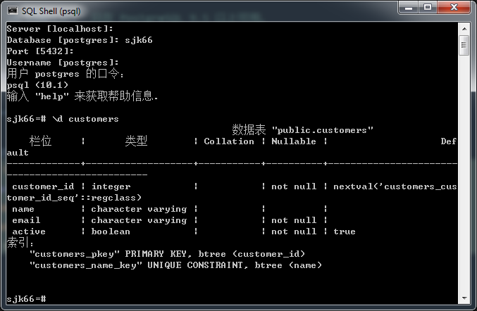 customers 表有4个字段:customer_id、name、email 和 active。其中,name 字段有唯一约束,用于确保客户的唯一性。