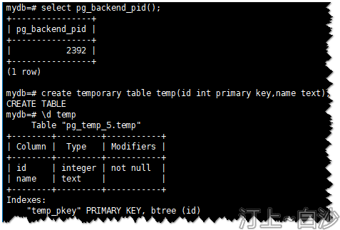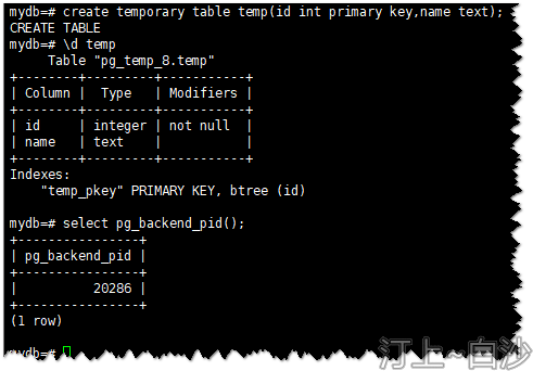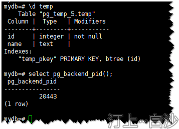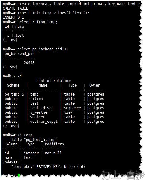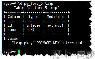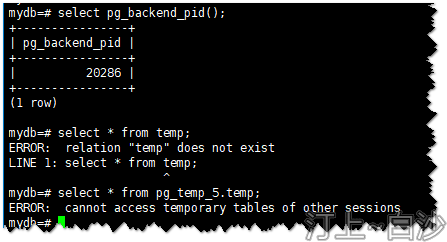 使用“pg_temp_5.temp”可以查询到temp的信息