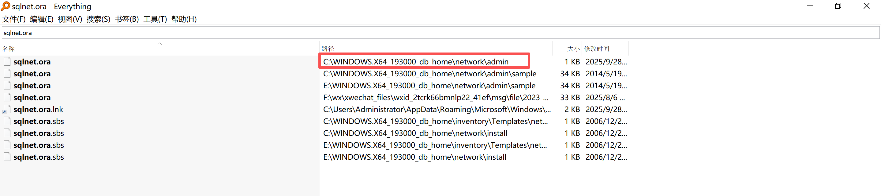 如果找不到自己本地的这个sqlnet.ora或者忘记安装路径,推荐使用小工具Everything,对开发的同学还是很友好的小工具。