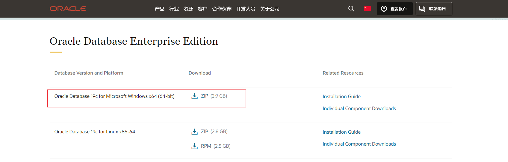 官方地址:https://www.oracle.com/cn/database/technologies/oracle-database-software-downloads.html