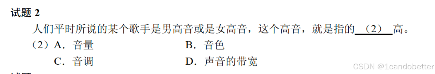 题目应用:如果描述一个歌手“嗓门大”或“声音洪亮”,这才是指音量大。