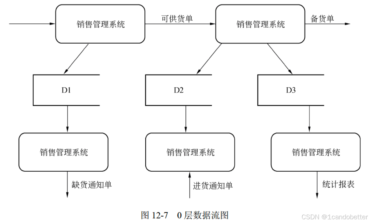 3、问题 2:使用说明中的词语,给出图 12 - 7 中的数据存储 D1 - D3 的名称。
