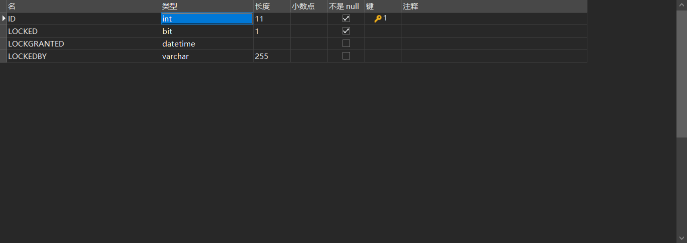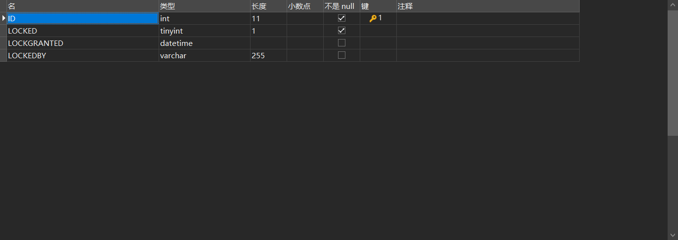 在我检查databasechangeloglock表属性的时候发现问题可能出在locked这个字段的数据类型上,我的数据库是mysql中间件用的mybatis-plus。
