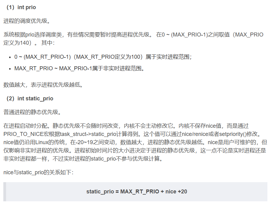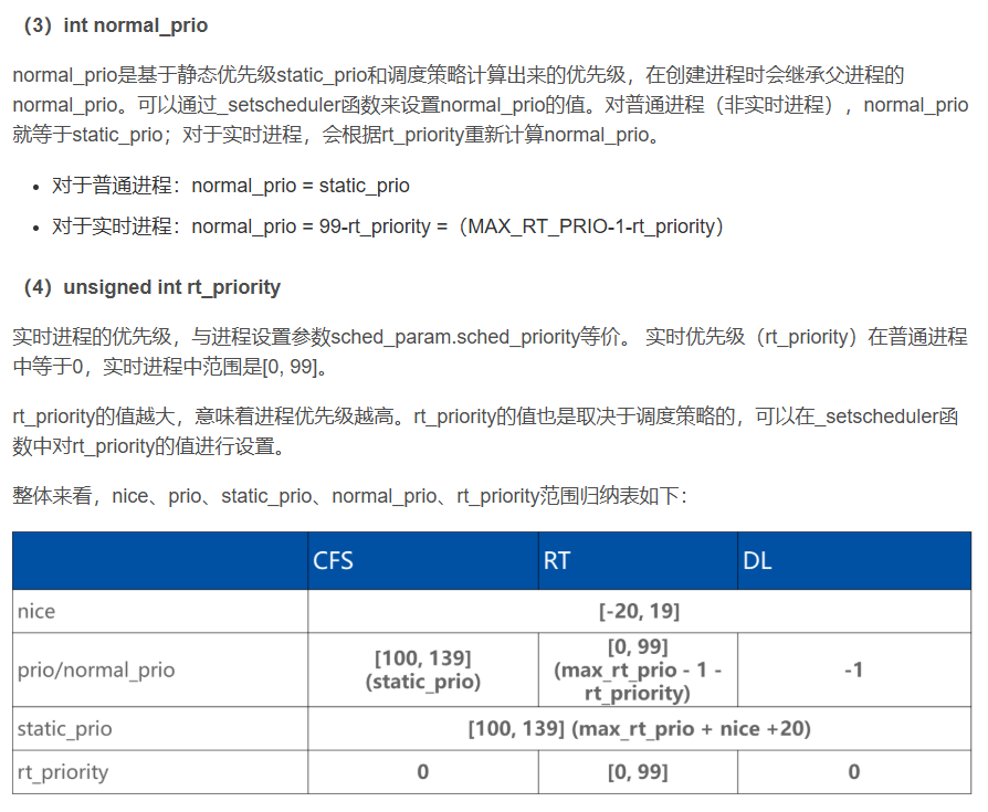 Linux内核中的优先级分为静态优先级和动态优先级(见前文书struct task_struct结构中进程调度相关成员)。静态优先级一般是进程创建时确定的,也可以通过特定的系统调用改变;动态优先级的初始值取决于静态优先级,但是随着进程的运行不断低调整改变。调度策略选择进程时考量的是动态优先级。