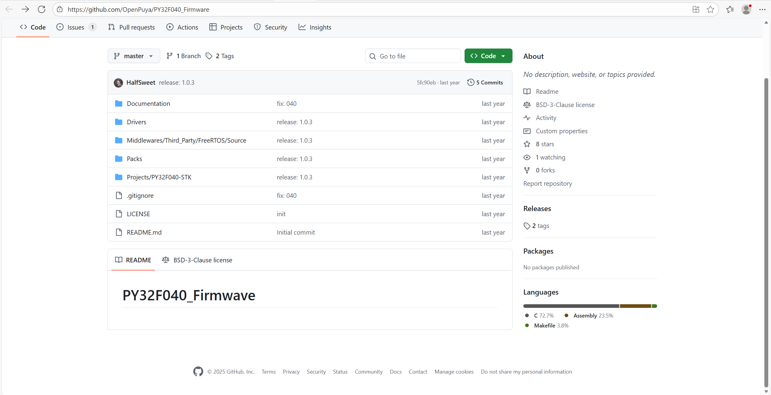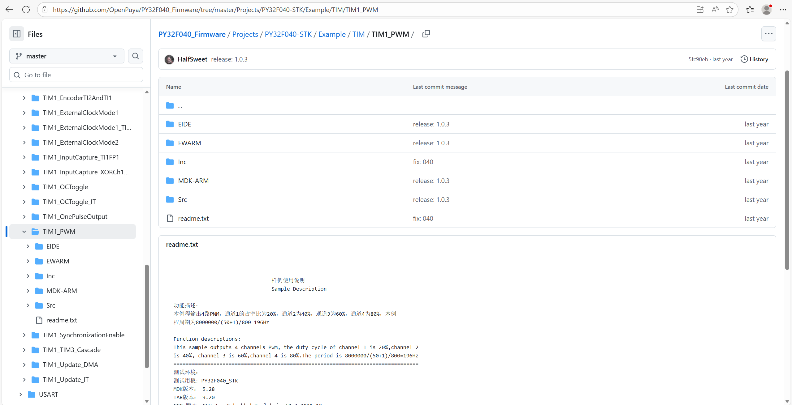 本文所基于的例程是普冉单片机例程中TIM\TIM1_PWM。开源网址为:GitHub - OpenPuya/PY32F040_Firmware
