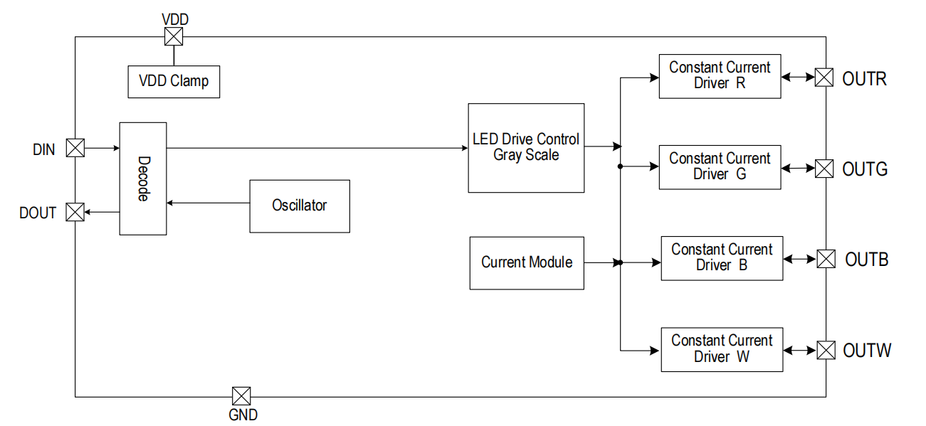 - OUT R/G/B/W恒流输出范围2.5~40mA