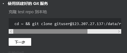 cd ~ && git clone gituser@123.207.27.137:/data/repositories/test.git