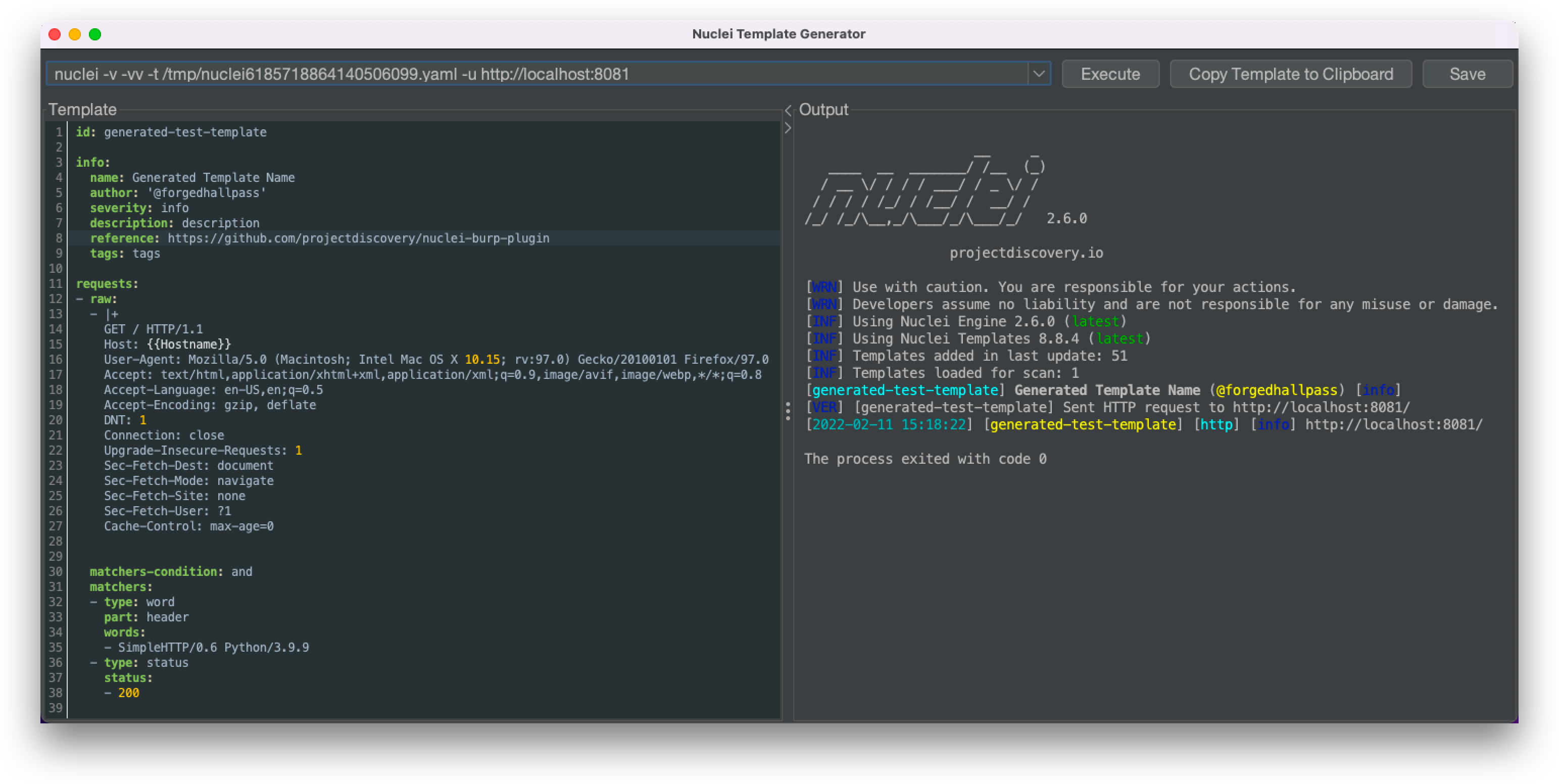 - 生成的模板可以立即执行,并且为了方便起见,输出显示在同一窗口中