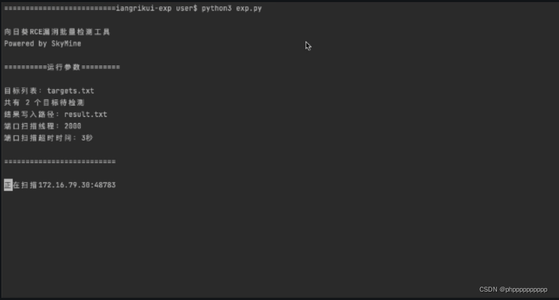 3、开始扫描,扫描结果保存在exp.py同目录的result.txt中