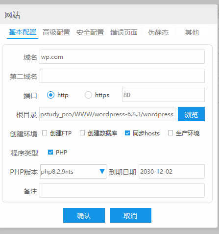 - )、创建网站,根目录选择刚解压的目录,php版本选择php8.3及以上(实际php7.4及以上都可以使用)