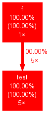 显示test被调用了5次,程序中耗时所占百分比最多的是test函数。