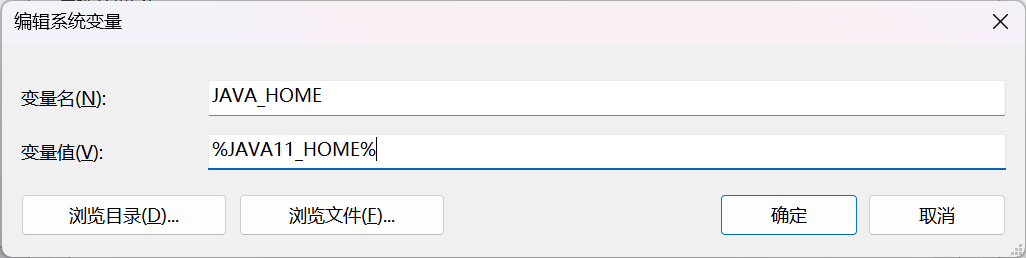ii、如果想改成java11,就是这样 %JAVA11_HOME%