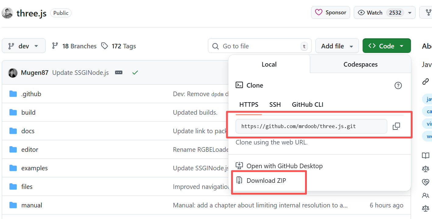 - git拉取本地:https://github.com/mrdoob/three.js.git