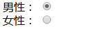 <form> 男性: <input type="radio" checked="checked" name="Sex" value="male" />
