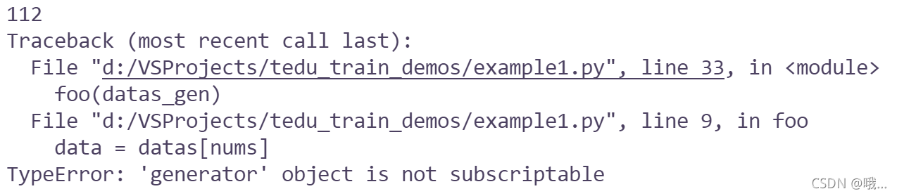 好,回到正文中来,现在foo函数有问题的原因是,foo函数在使用[ ]表达式从数据源中获得数据,然后生成器对象目前并不支持[ ]表达式,所以产生了错误。