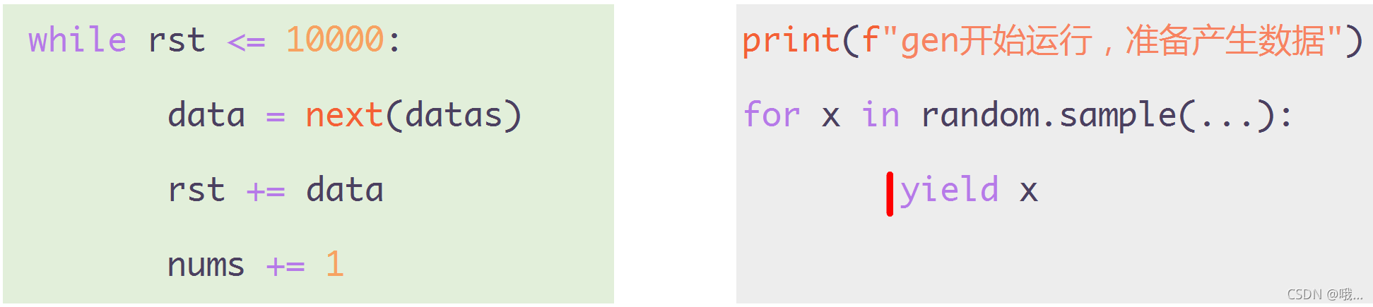 yield是Python的关键字,凡是函数体中出现yield的“函数”就不再是函数了,而是生成器。执行gen()会获得一个生成器对象,也就是前面说的,生产2000个不重复的1~10000之间数字的机器。