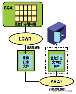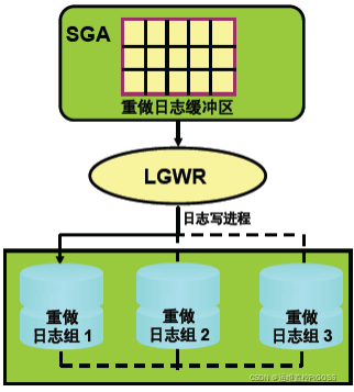 - 提交,LGWR进程将条目从重做日志缓冲区写入联机重做日志文件;