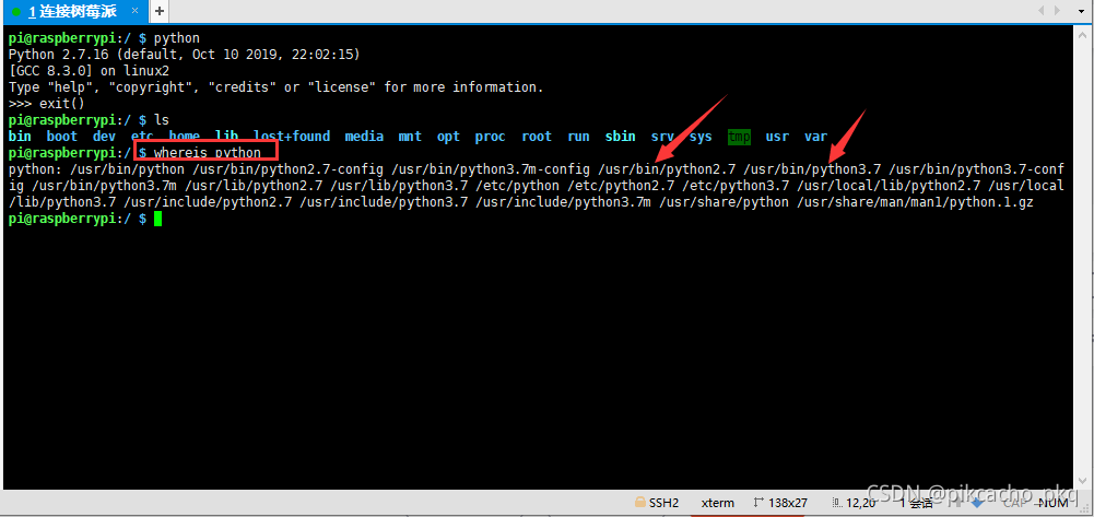 其实,如果使用的是树莓派官方推荐的操作系统的话,那么是可以直接使用python环境的,因为官方系统自带了python环境,这里我们查看一下默认的python环境。
