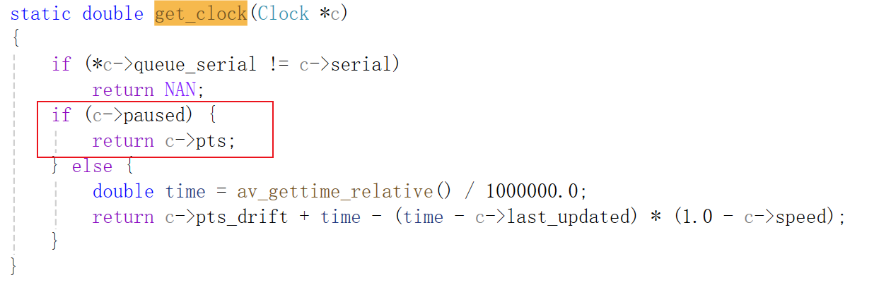 在暂停状态下,当调用get_clock()获取时钟时,直接返回最后一次的pts。
