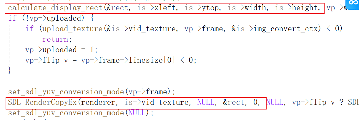 通过calculate_display_rect()重新计算SDL窗口的大小,并继续渲染最后一帧。因为vp帧的数据已经拷贝到纹理了,此时vp->uploaded为1不会再调用upload_texture()。