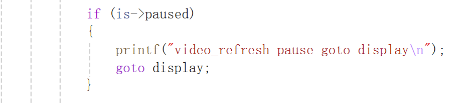 刚开始暂停时,is->paused标志为0,没有执行if语句,if语句恢复播放时执行