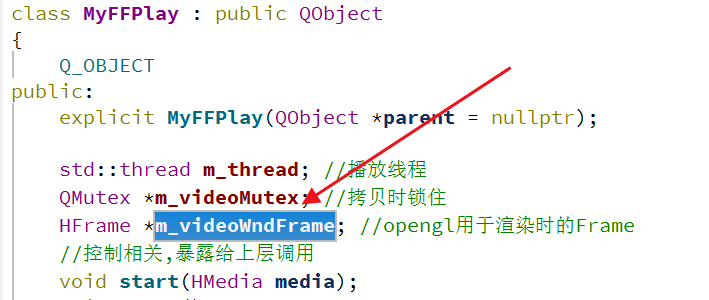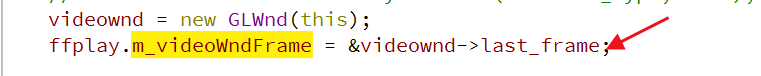 在MyFFPlay类中,添加变量HFrame * m_videoWndFrame,该变量m_videoWndFrame指向opengl模块的HFrame last_frame。