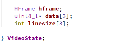 在video_state结构体中,添加三个变量hframe,data数组,linesize数组。