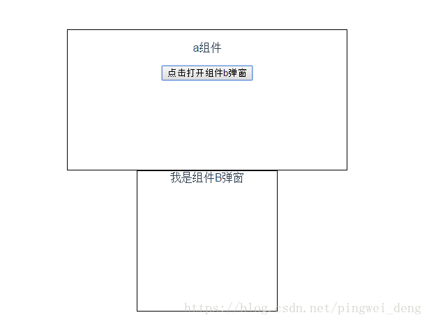 简单实例:我们在a组件中点击按钮,将信息传给b组件,从而使b组件弹出。