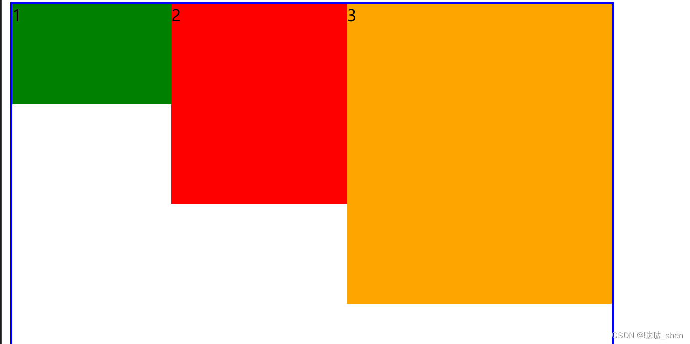 - flex-end:项⽬对⻬到主轴终点,项⽬间不留空隙。