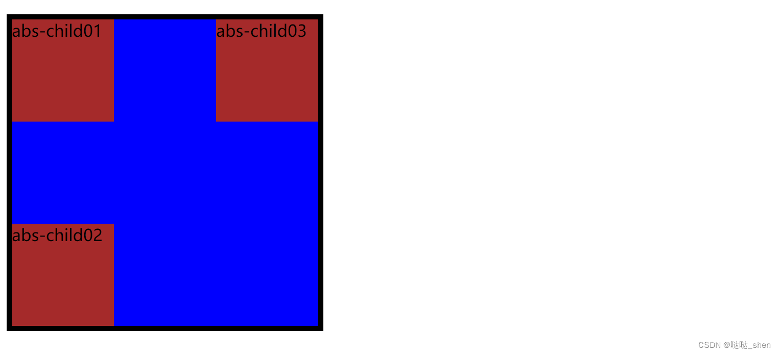 - absolute 绝对定位 相对于上一个已经定位的父元素进行定位