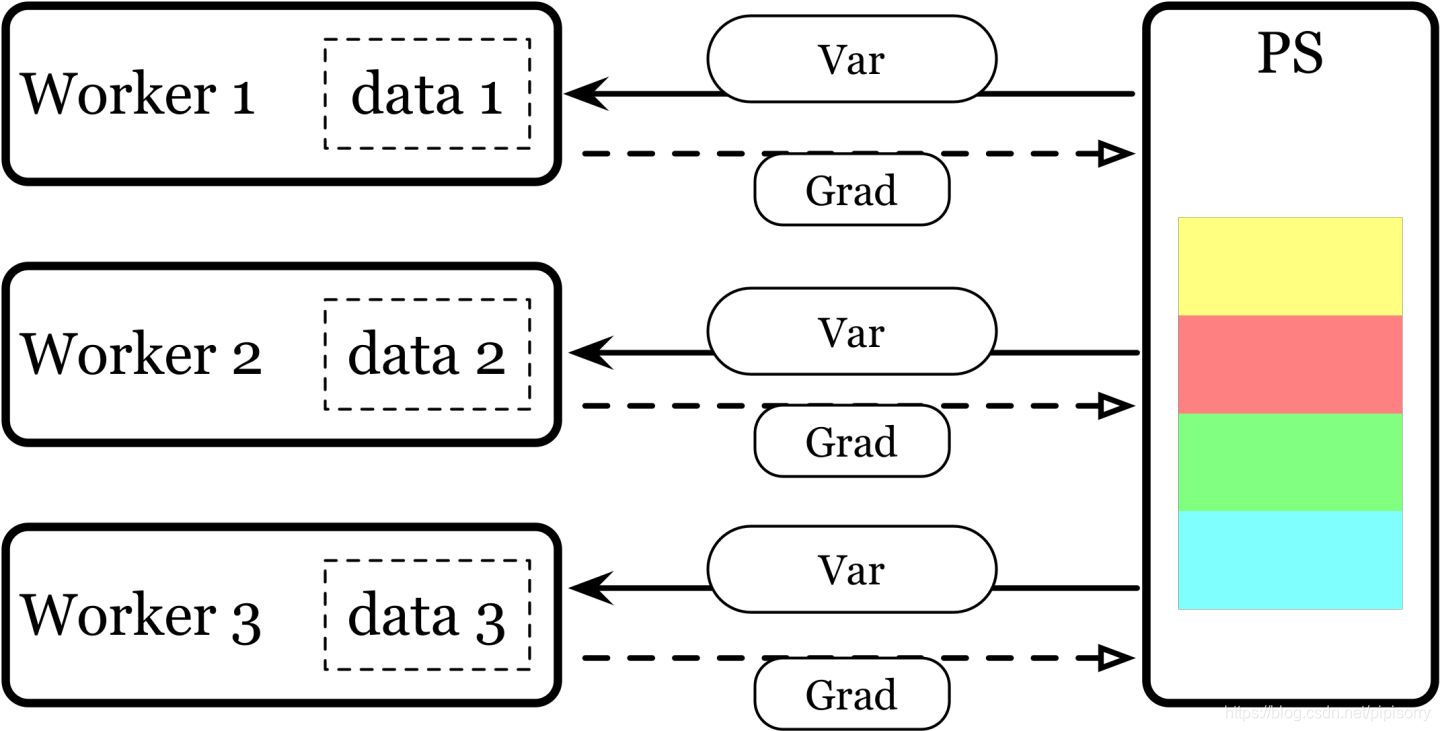 ps 拿到参数后,视更新的方案不同可以分为同步更新(synchronous update)和异步更新(asynchronous update)。