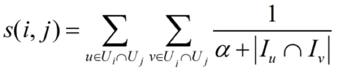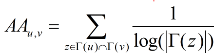 在实际应用中更著名的是Adamic/Adar,常常被各种paper拿来当base line。我们来看一下Adamic/Adar的定义: