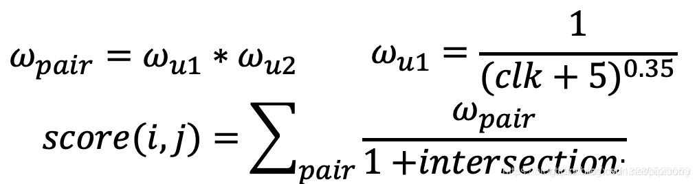 该算法核心是在经典余弦相识度算法基础上,对那些浏览行为过多的用户进行权重惩罚。如果取W_u=1就退化成jacard相似度公式。