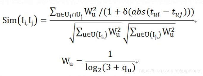 这个算法在经典余弦相识度算法基础上,对那些行为多的用户进行权重惩罚,同时还考虑了时间因素,实际应用效果比Jaccard’s Coefficients和原始的Cosine Similarity会有提升。
