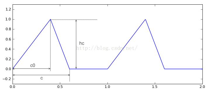 return np.where(x>=c,0,np.where(x<c0, x/c0*hc, (c-x)/(c-c0)*hc))