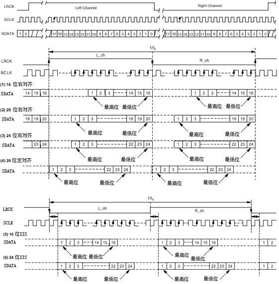 - 串行数据SDATA:就是用二进制补码表示的音频数据。