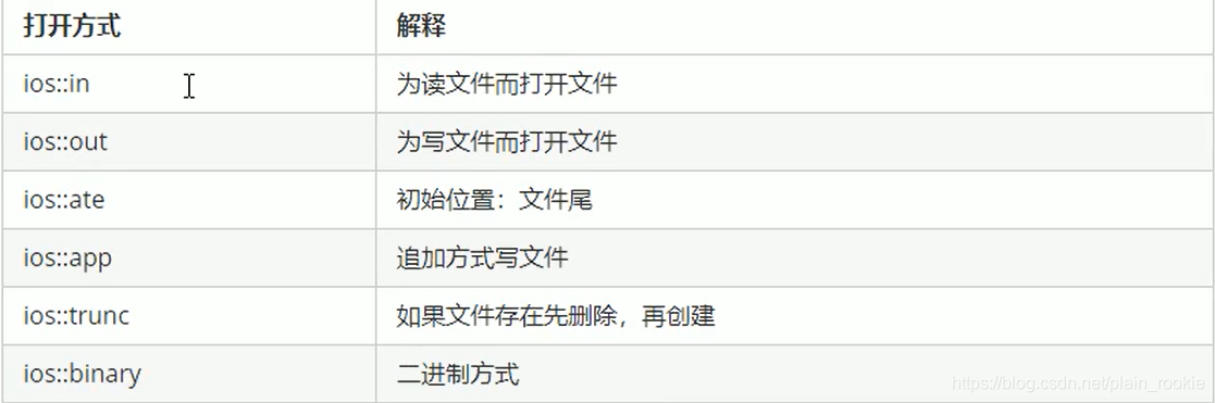 (1)ofstream:写操作;(2)ifstream:读操作;(3)fstream:读写操作