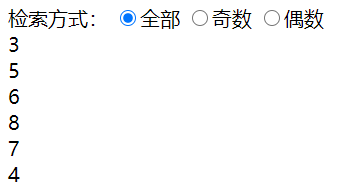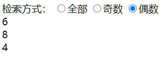 比如说,有人给了我们这些数字:3, 5, 6, 8, 7, 4,并且要我们显示其中的偶数。