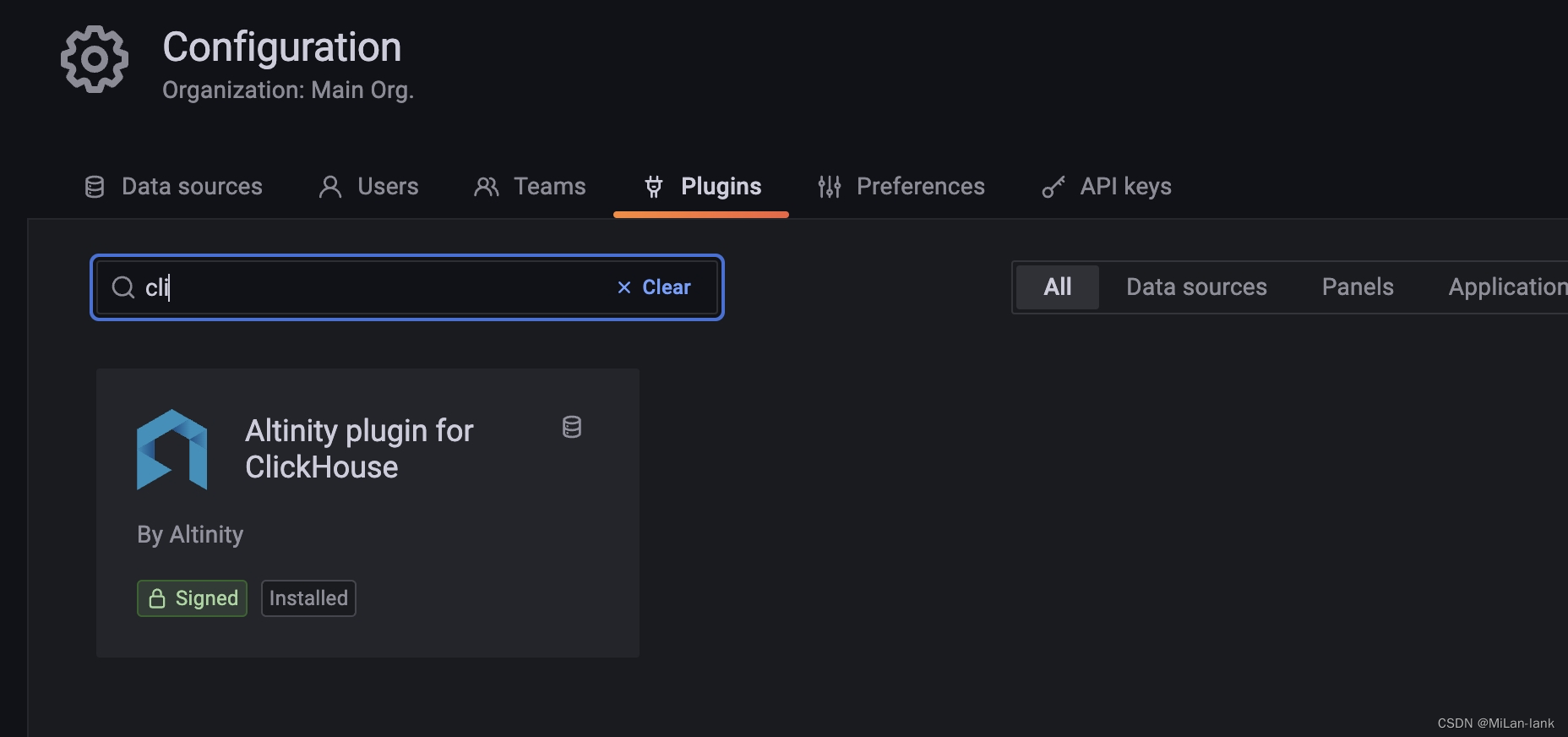 在grafana未发现clickhouse数据源,我们拉到底部,点击进入:Find more data source plugins on grafana.com