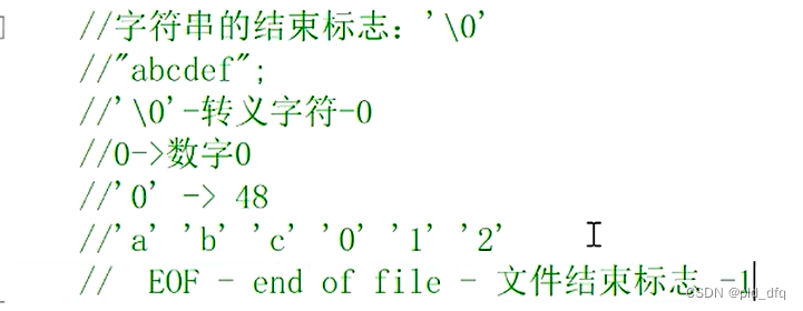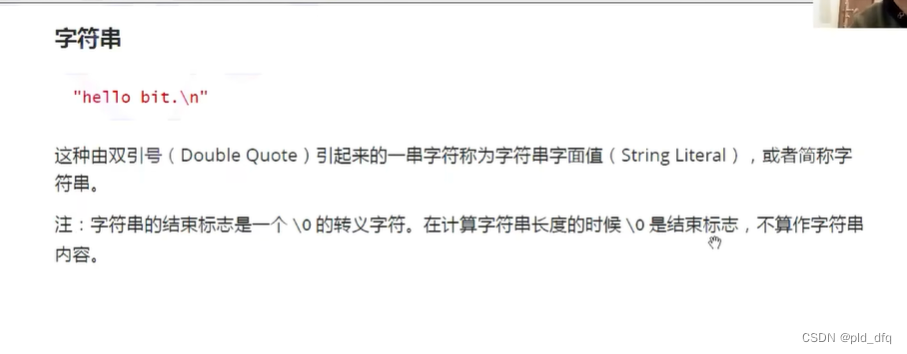字符串由“ ”引起,一串字符,字符串要以\0结尾,占一个字符,值为0,\0是字符串的结束标志