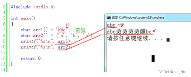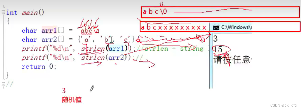 strlen在检测到'\0'时才会停下,故此处打印随机值