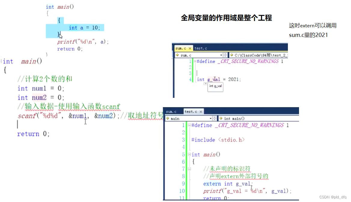 全局变量的生命周期=main函数的生命周期=程序的生命周期