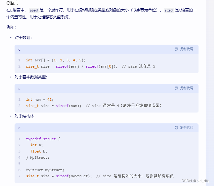 在C语言中,sizeof是语言内置的,它在编译时工作,返回的是类型或对象在内存中所占用的字节数。C语言是一种静态类型语言,类型在编译时确定,因此sizeof可以在编译时得出精确的结果。