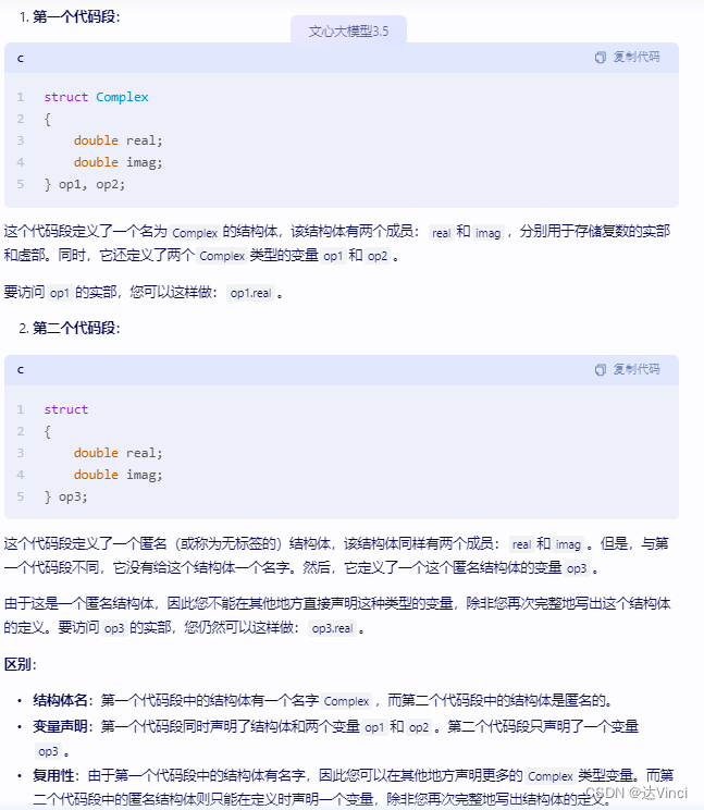 有什么区别:struct Complex { double real; double imag; }op1,op2; struct { double real; double imag; }op3
