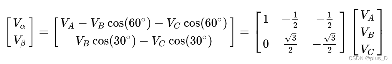 当分解在α轴和β轴就有Clark变换:3/2变换