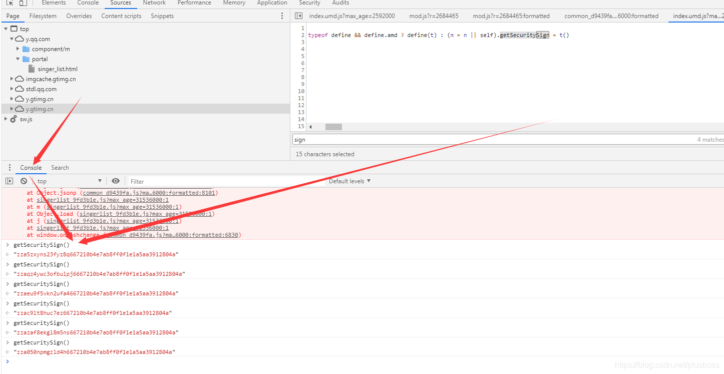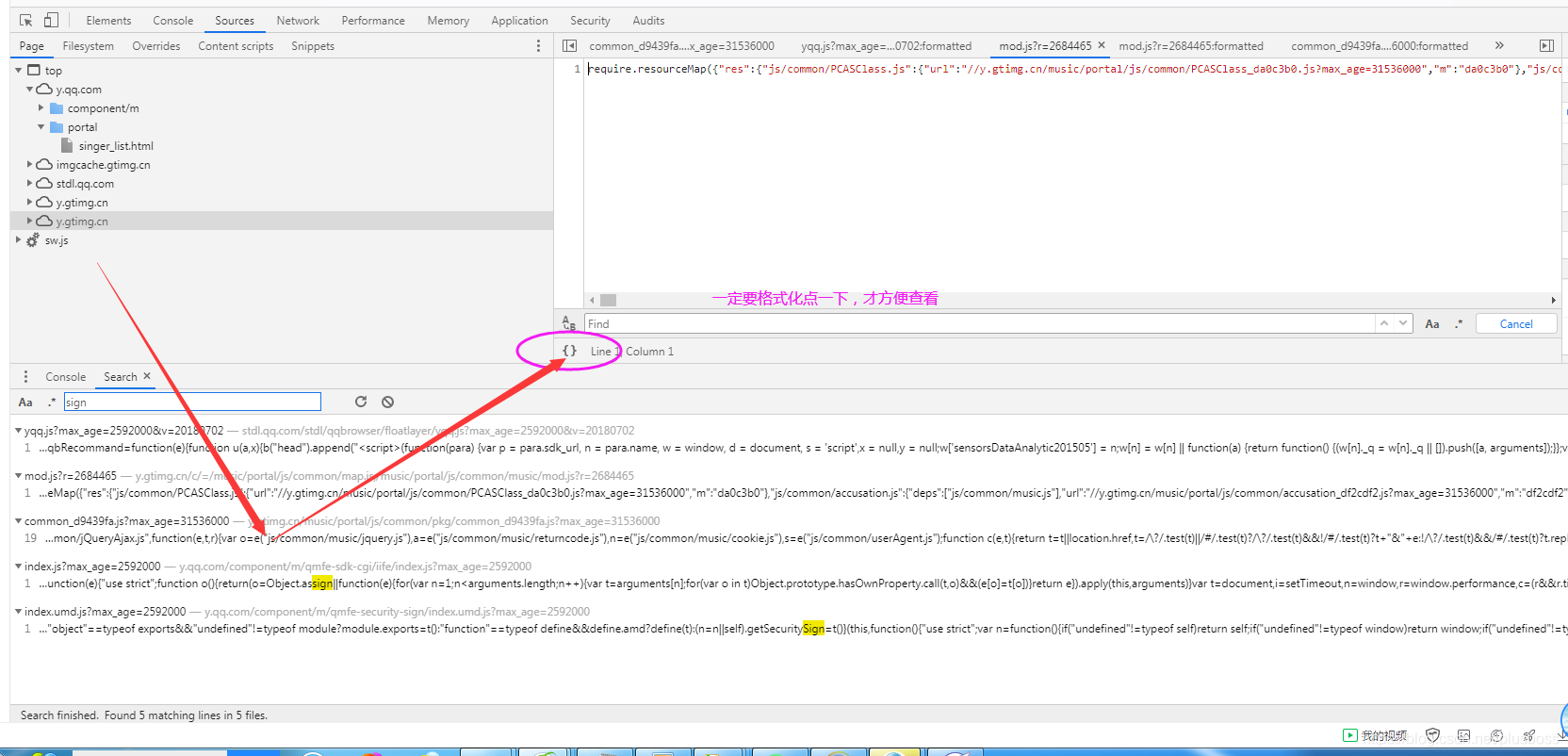 仔细搜索找到这一串代码:r.url.indexOf("u.y.qq.com") > -1 && (r.url = c("sign=" + getSecuritySign(r.data.data), r.url),