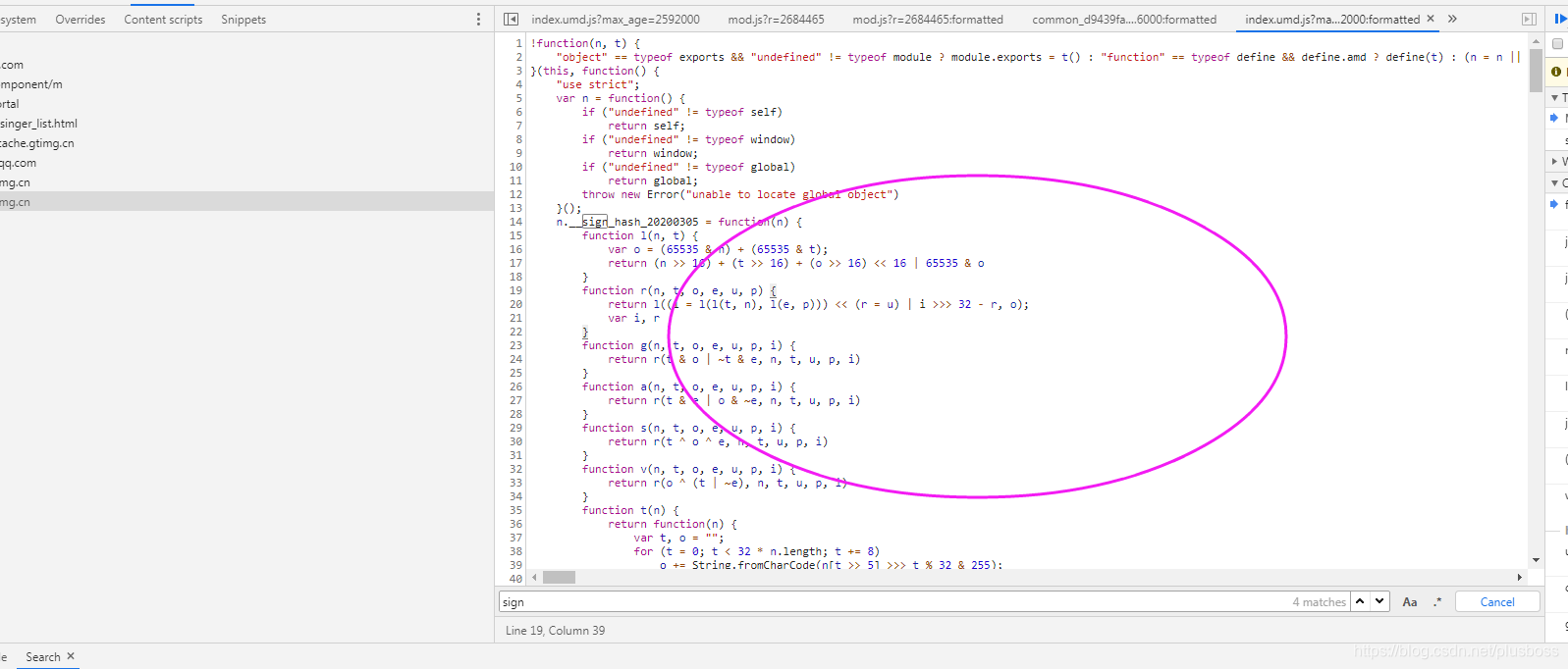 通过 搜索sign后,下面出现了几个网址,那我们一个个去打开找一下,关键位置。