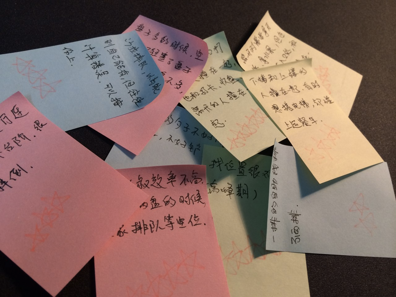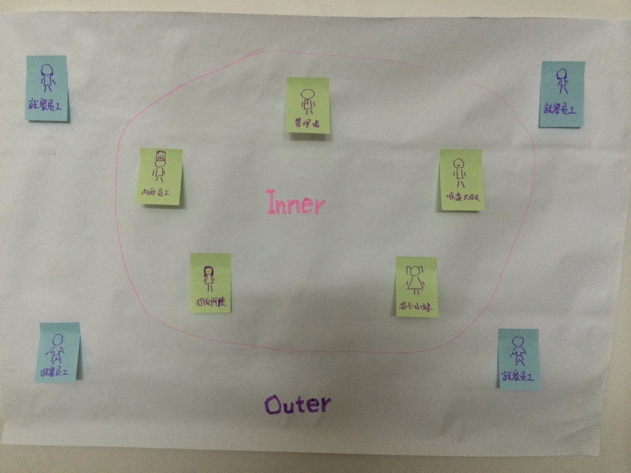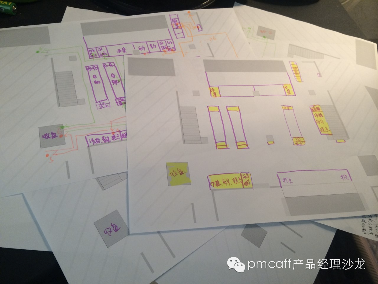 在分析问题阶段,设计师在一个桌面上,画上各个触点,并标明触点的基本情景,使用乐高模型or纸片来代表每一位关键人物(角色模型),通过模拟他们与服务之间的交互情景,阐述他们接受服务or提供服务的场景、遇到的问题。由于此时项目的每一位人员都参与进来,大家就能当场对场景进行讨论,进行头脑风暴。
