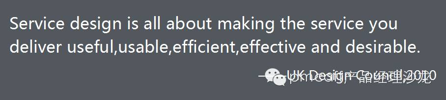 英国设计协会从一个方面对服务设计的定义说明了服务设计使得为人提供的服务有用、可用、有效率和被需要。