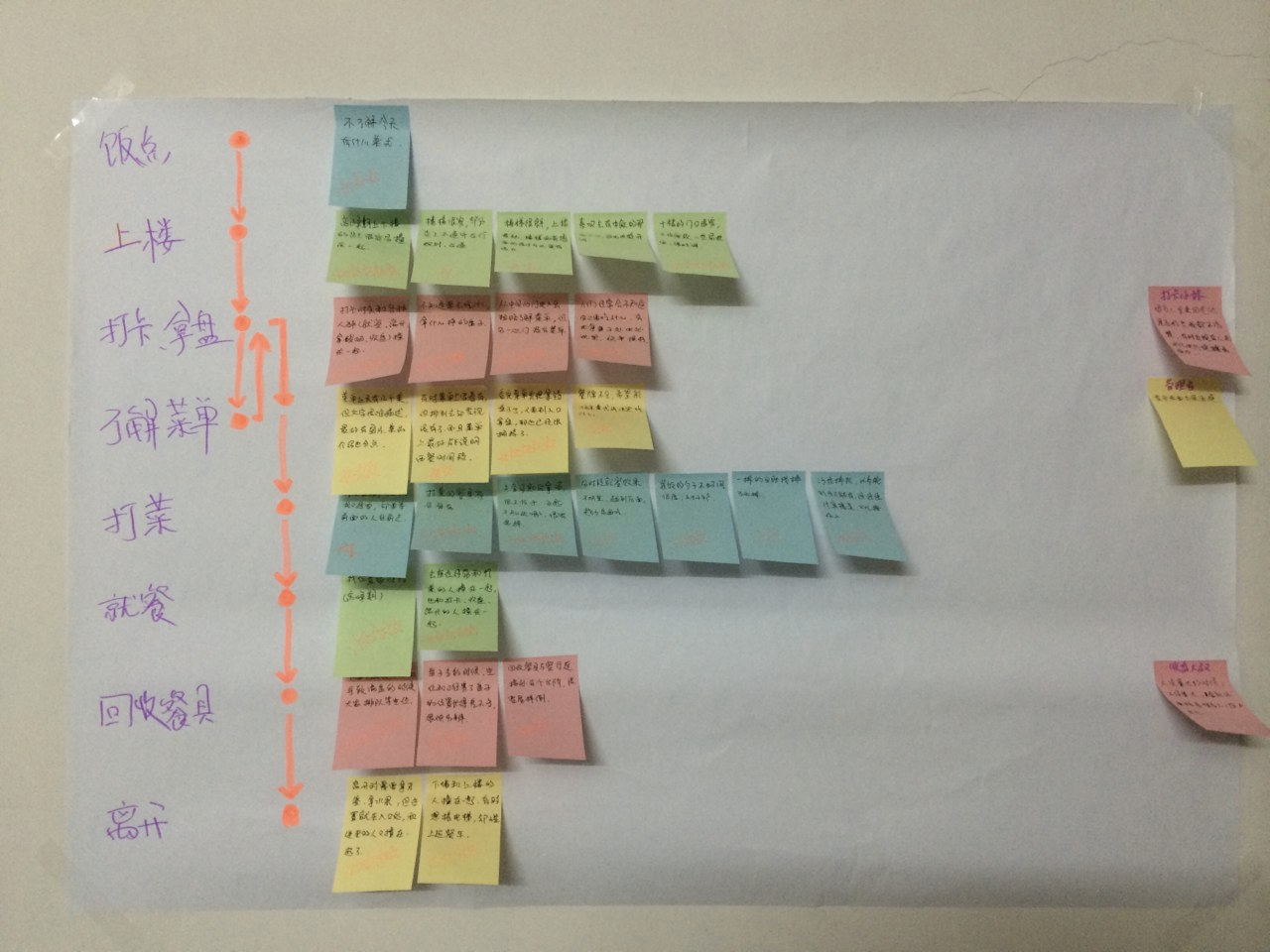 通过问题卡片以及服务体验,列出触点,并把对应的问题卡片分派到各触点上,对各触点存在的问题一目了然。走查问题卡片,画出服务流程,发现流程问题,最后为每个问题划分类型和优先级